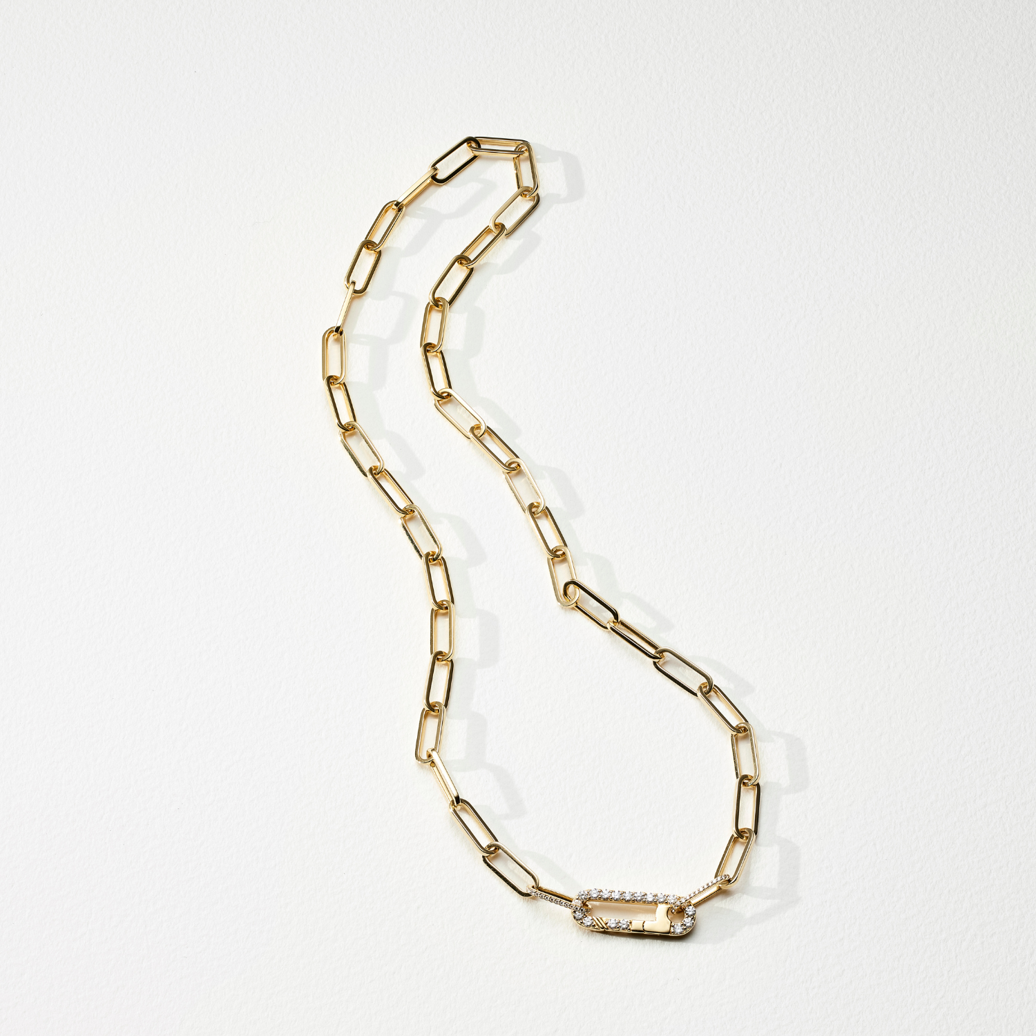 ALINKA’s house chain is at the center of this strong yet sensual edit of LINK-inspired design, made to be paired with the signature LINKA Grande Earrings.