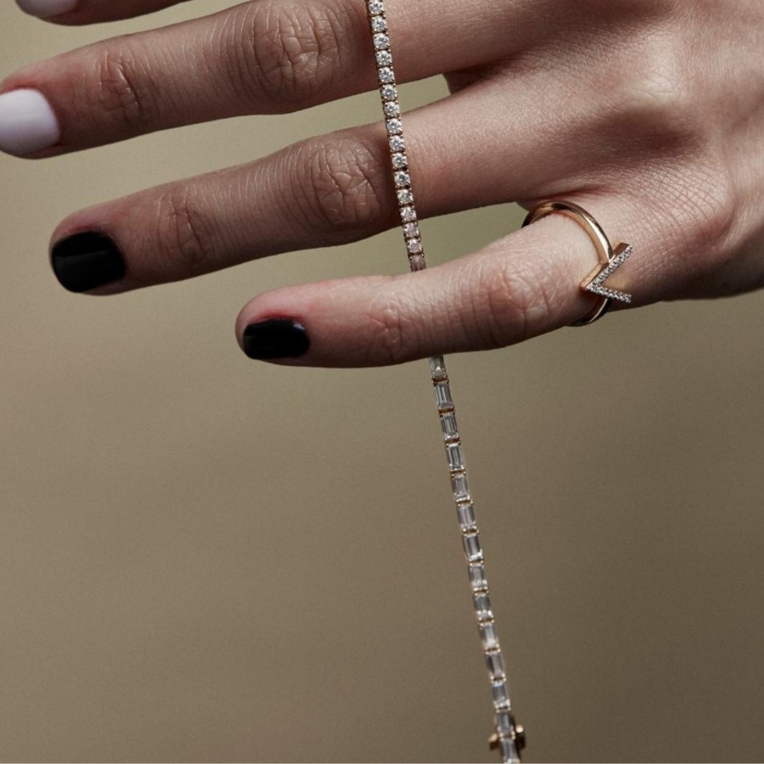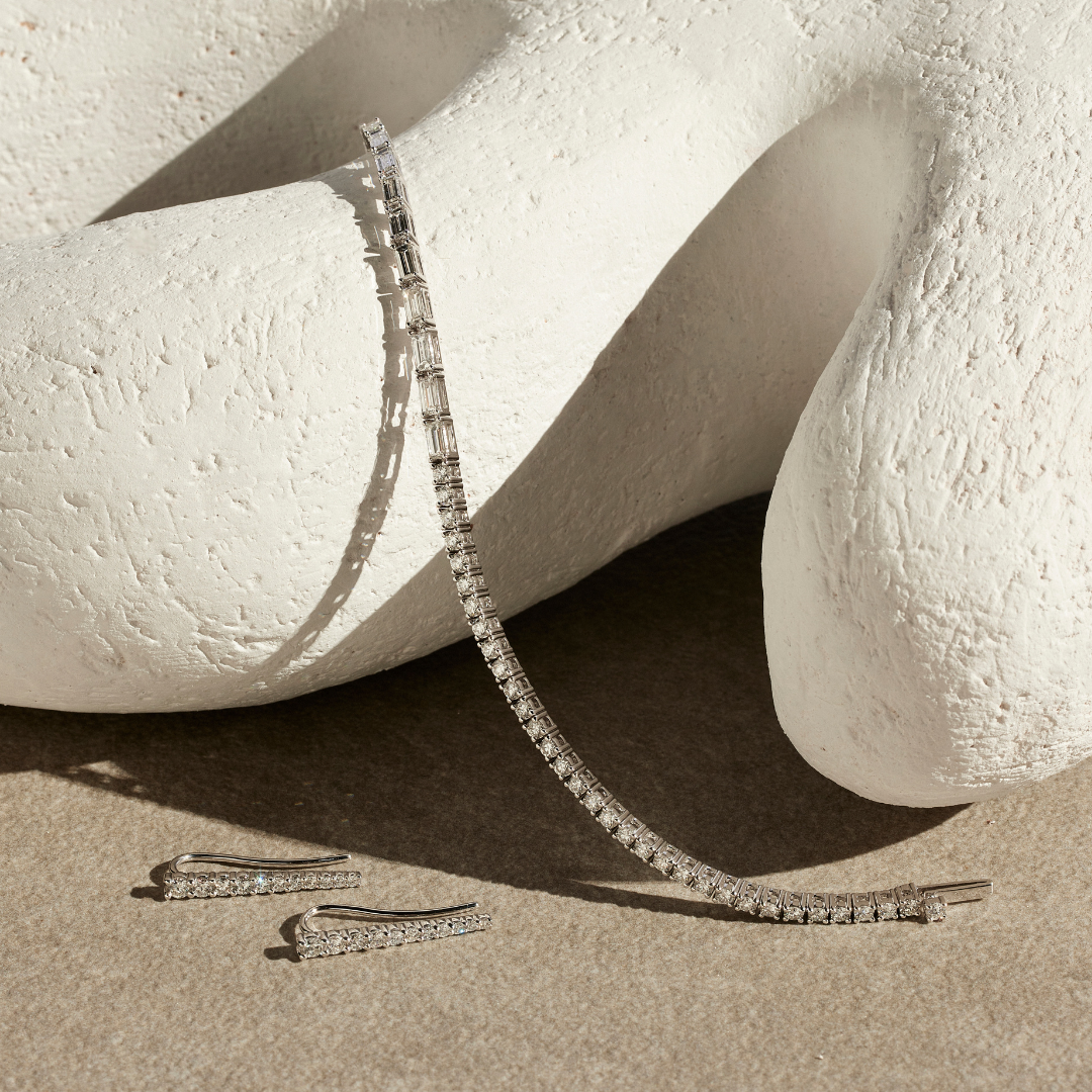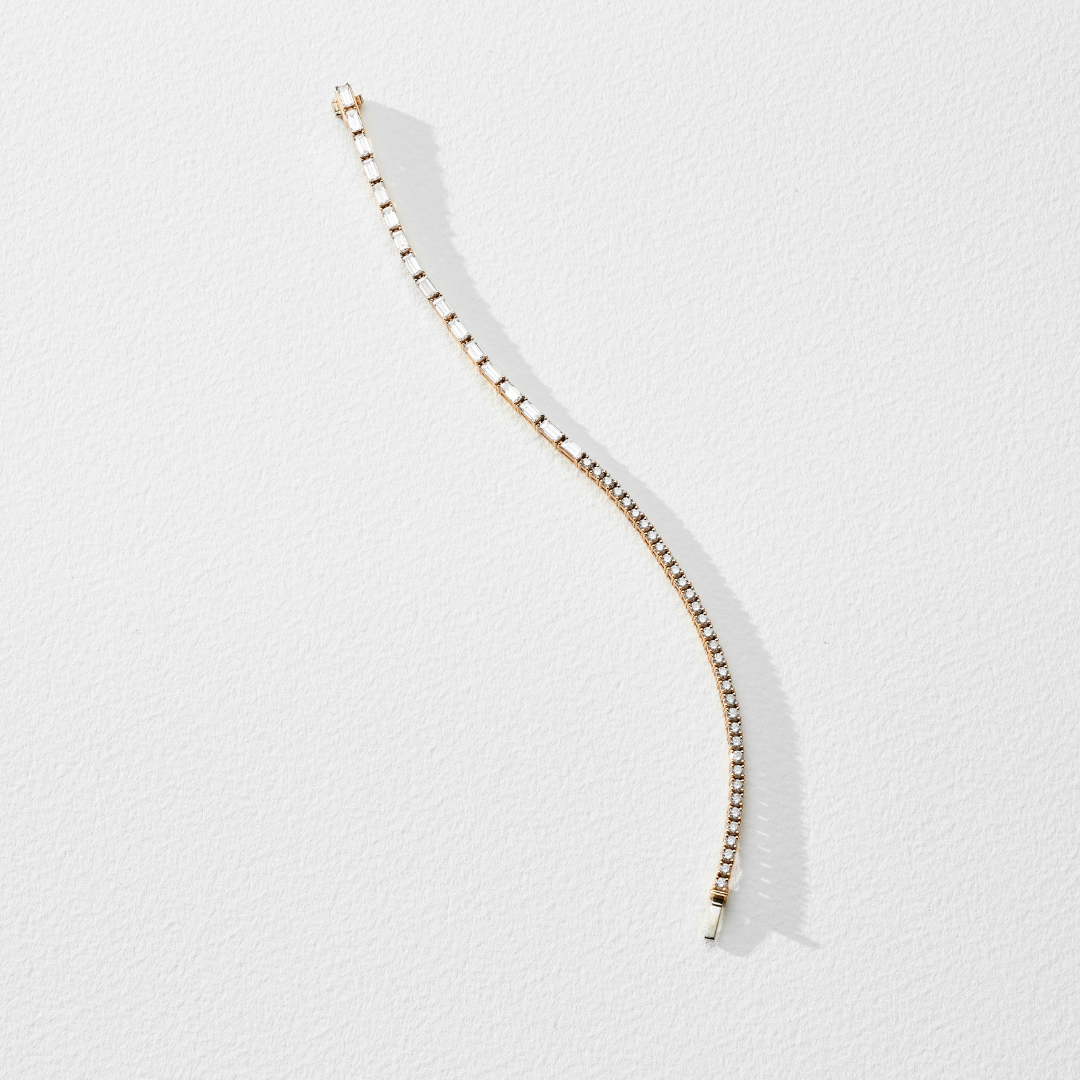 A contemporary twist on the classic tennis bracelet blending timeless elegance with modern sophistication.