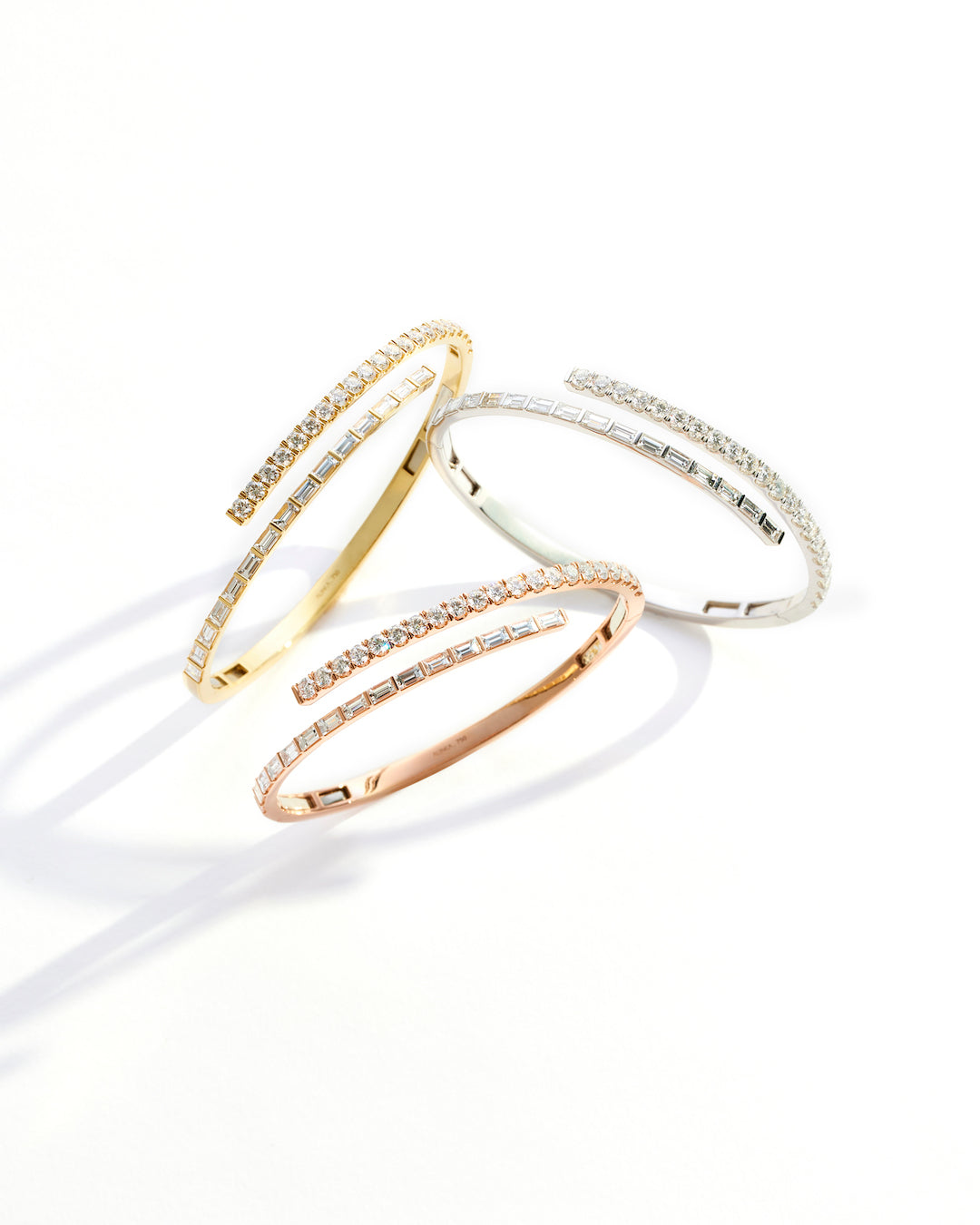 A signature design, the ECLIPSE Diamond Bangle showcases a striking contrast of brilliant and baguette-cut diamonds, perfectly balancing elegance and innovation within a classic and modern silhouette.